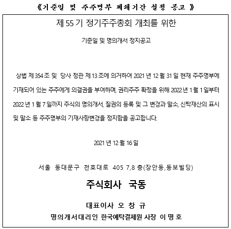 2022년 정기주주총회를 위한 개인정보 처리업무 위탁에 따른 수탁자정보공개