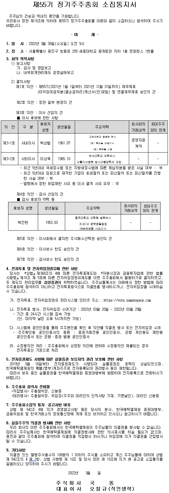 2022년 정기주주총회를 위한 개인정보 처리업무 위탁에 따른 수탁자정보공개