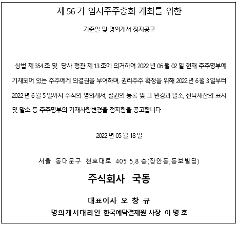 2022년 임시주주총회를 위한 개인정보 처리업무 위탁에 따른 수탁자정보공개