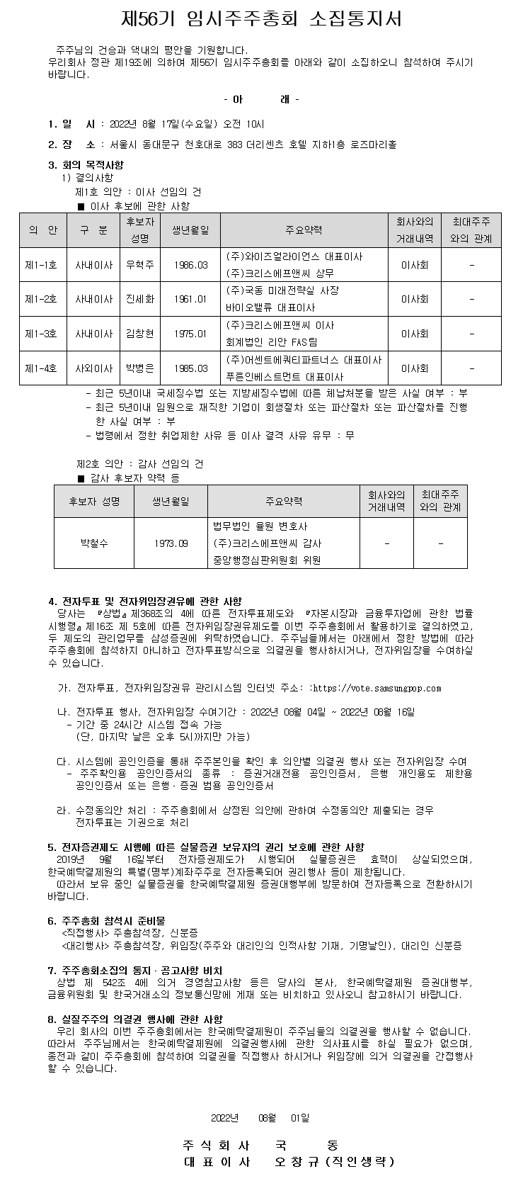 2022년 임시주주총회를 위한 개인정보 처리업무 위탁에 따른 수탁자정보공개